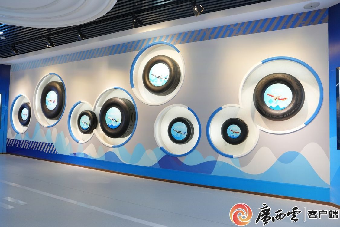 桂林蓝宇展厅里展现着多种规范的民用航空轮胎。 广西云-广西日报记者古秀芳 摄